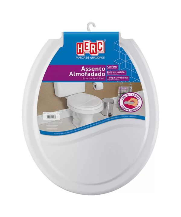 Fabricado em EVA; Preenchido em Poliuretano; Acabamento brilhante; Leve, resistente e macio; Suporta carga de até 130 kg; Fácil instalação; Parafusos possibilitam ajuste de distância para fixação a louça.Composição: Conjunto de fixação; Assento; Tampa.