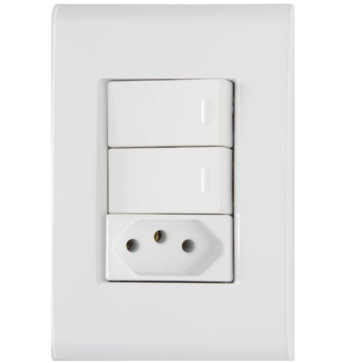 Interruptor Duplo + Tomada 10A Pluzie