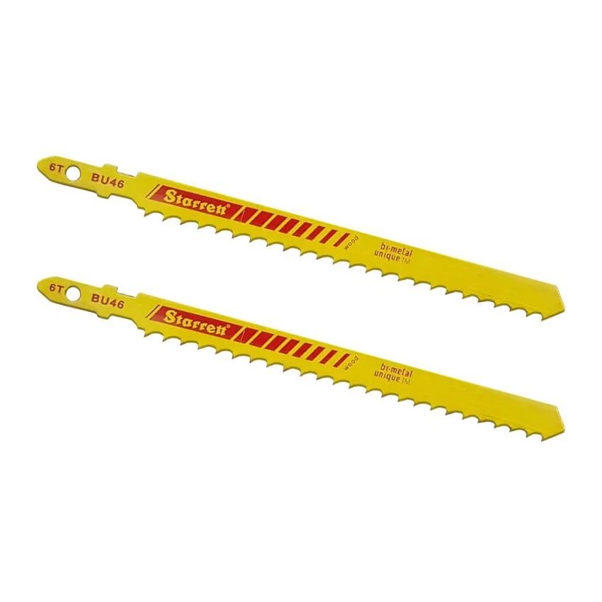 O par de Lâminas Tico-Tico Starrett é próprio para trabalho na madeira, é confeccionada em Bi-Metal Unique, o que proporciona uma maior durabilidade se comparada com outras lâminas, além de fornecer uma velocidade de corte um pouco maior e exige menos esforço por parte do operador da máquina. A Lâmina modelo BU218 por ter 6 Dentes, é ideal para o corte de Madeira de 30mm a 45mm.